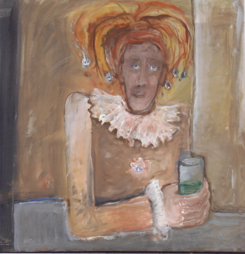Harlekin mit Absinth / Mitte 2010 / 80 x 80 / Acryl-LW / #2010.05