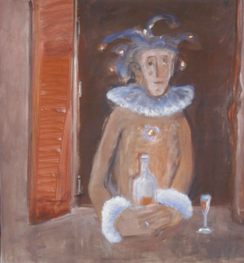 Harlekin mit Rotwein / Mitte 2010 / 80 x 80 / ACryl-LW / #2010.06