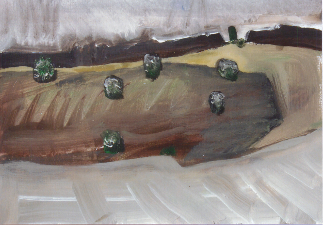 Usedom 2010 – Feld mit Holunderbüschen / 06.2010 / Acryl / #2010.07