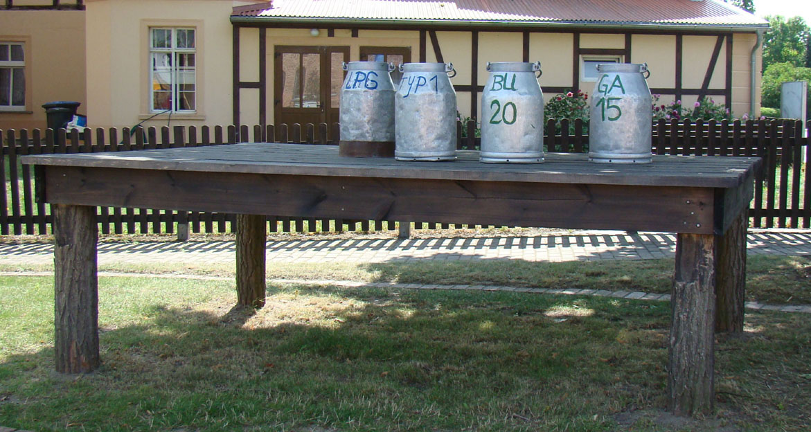 - Dieses Foto gehört eigentlich nicht in die Serie. Für diejenigen, die es nicht wissen: Das ist eine Milchbank. Auf diese Rampe stellten früher die Bauern ihre Milchkannen, die später von einem LKW der Molkerei abgeholt wurden.